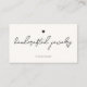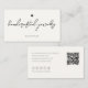 Minimalistische und elegante Visitenkarte mit kleiner Schwarz-Herz-Illustration und stilvollem handgeschriebenem Titel "handgefertigter Schmuck" auf hellen Hintergrund. Ideal für handgemachte Unternehmen, Online-Shops und kleine oder große Unternehmen. Einfaches Design mit Social Media Icons. Sie können die Karten mit Ihrem Text und qr-Code anpassen. Fügen Sie Ihren Namen, Titel, Social Media Handle und Website-Adresse hinzu.