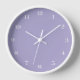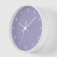 Modernes, minimalistisches Design mit einem schönen, hellen Lavendelhintergrund und weißen Ziffern. Die perfekte Ergänzung zu jedem Zuhause oder Geschäft.