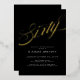 Moderne Minimalistische 60 Black Gold 60. Geburtstagsfoil Einladung. Für eine Meilenstein-Geburtstagseinladung verkörpert das Design modernen Chic mit minimalistischem Schwarz-Gold-Farbschema. Die Einladung zeichnet sich durch einen schlichten schwarzen Hintergrund mit eleganter Goldskripttypografie aus, die eine Touch der Verfeinerung schafft und ein raffiniertes und zeitgenössisches Aussehen verleiht. Das Gesamtbild ist sauber und puristisch, sodass die stilvolle Schrift und das minimalistische Design glänzen und so eine Einladung schaffen, die gleichzeitig mühelos elegant und elegant zugleich modern ist.