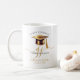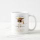 Feiern Sie Ihre Errungenschaft stilvoll mit dieser modernen Abschluss-Tasse der Graduiertengruppe, mit einem schlanken Design mit einem goldenen Graduierungsdeckel und Topper, und eleganten Goldskriptkalligraphie-Initialen. Das gepflegte Design verleiht dem Hotel eine Touch von Modernität.