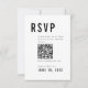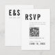Diese fett schwarz-weiße, moderne QR-Code-RSVP-Karte verfügt über eine saubere Typografie und ein einfaches Layout für einen leicht schicken Look. Das Hotel ist perfekt für zeitgenössische Hochzeiten oder Hochzeiten in der Stadt geeignet und bietet Antwortmöglichkeiten und eine leicht lesbare Dattelinie. Vollständig anpassbar für Ihre Hochzeitsdetails.