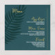 Moderner Minimalistischer Blauer Palmenblättertisc Menükarte
