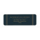 Ein aquamariner, minimalistischer Hintergrund mit drei einfachen Linien auf beiden Seiten wird Ihrer Rücksendeadresse noch immer eine dramatische Touch verleihen. Der Text und die Zeilen sind in einem sandig antiken Gold. Fügen Sie einfach Ihre Namen und Rücksendeadresse hinzu. Composite Design von Holiday Hearts Designs (Rechte vorbehalten).