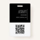 Steigern Sie Ihre Firmenidentität mit diesem modernen Abzeichen mit einem eleganten, minimalistischen Design in Schwarz und Weiß. Personalisieren Sie es mit einem beruflichen Foto, einem Firmenlogo und QR-Code für eine einfache Vernetzung und den einfachen Zugriff. Ideal für Unternehmen, die ein sauberes, raffiniertes Aussehen suchen, das die Professionalität und Liebe zum Detail ihrer Marke widerspiegelt. Dieses Abzeichen eignet sich ideal für Firmenveranstaltungen, Konferenzen und tägliche Büroanwendungen und sorgt für Stil und Funktionalität.