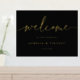 Modernes Minimalistisches Hochzeitwillkommen Gold Foil Typografy Poster mit schwarzem Hintergrund.