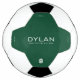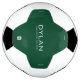 Moderner, minimalistischer personalisierter Fußball mit Namen in einem Sans Serif Schriftart in Weiß auf dunkelgrünem Hintergrund. Dies kann mit einer Team-Jersey-Nummer und einem anderen angepassten Text am oberen und rechten Rand des Hauptnamens in der Mitte angepasst werden. Dies würde einen lustigen Geburtstag oder ein Urlaubsgeschenk machen, sowie ein Gedenkfest.