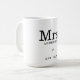 Feiern Sie Ihr neues Kapitel mit dieser schicken "Mrs. Est" individuelle Name Kaffee-Tasse. Dieser maßgeschneiderte Schlamm ist in minimalistischem Design perfekt für Neuvermählte oder als besonderes Geschenk für Ihre Lieblingsbräune.