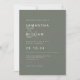 Stillose Eleganz mit dieser minimalistischen Hochzeitseinladung. Präzise, allkapselweiße Sans serfen Schriftart kontrastieren wunderbar mit einem sanften olivgrauen Hintergrund, der Eleganz und Einfachheit ausstrahlt. Jedes Stück in dieser vielseitigen Kollektion kann gemischt und mit koordinierenden Farben kombiniert werden, um eine personalisierte Touch für Ihren besonderen Tag zu gewährleisten. Entdecken Sie unsere Kollektion jetzt für ein mühelos schicke Hochzeitserlebnis.