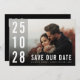Erzählen Sie Ihren besonderen Tag mit dieser fett-schwarzweiß-Foto-Save the Date Karte. Mit übergroßen Initialen, knackiger Typografie und einem sauberen Design ist es ideal für Paare, die ein modernes und minimales Aussehen suchen. Vollständig editierbar, um Ihren Stil Anzug.