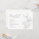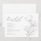 Eine moderne Schwarz-weiße Brautbrunch-Einladung in minimalistischem Stil mit einem Blumenarrangement. Personalisieren Sie alle wichtigen Details, wie z.B. den Namen der Braut, das Duschdatum, den Standort und die Registrierungsdaten.