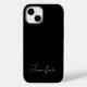 Schützen Sie Ihr neues Handy vor Kratzern mit diesem modernen Minimalistischen Schwarz-weißen Chic Script Name Case-Mate iPhone 14 Fall. Es ist einfach und elegant gestaltet mit dem Namen in weißen trendigen handgeschriebenen Script-Schriftart in der unteren Mitte. Klicken Sie auf die Option Vorlage personalisieren und geben Sie den Namen ein.