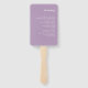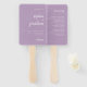 Diese eleganten, farbenfrohen minimalistischen Hochzeitsfans sind mit weißer, moderner Schrift-Typografie und sauberem Sans Serif-Text für ein einfaches und stilvolles Lavendel-lila Design, das Sie Liebe. Die Rückseite des Ventilators enthält Ihre Zeremonie oder andere Informationen Ihrer Wahl.