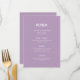 Moderner Minimalistischer Script-Lavendel | Hochze Menükarte