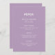 Diese elegante, minimalistische Hochzeitskarte besticht durch moderne, weiße Schrift-Typografie und einen sauberen, serifenlosen Text auf einem farbenfrohen, lila Hintergrund für ein schlichtes und stilvolles Design, das Sie in Liebe setzen.