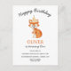 Eine niedliche whimsical Waldfox Neutrale Geschlechtsgeburtseinladung zum ersten Geburtstag mit dem Namen und dem Alter Ihres Kindes. Sie können den ganzen Text bearbeiten.