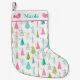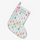 Dieser Weihnachtsbaum hat ein Weihnachtsmuster, das in einem modernen schwedischen minimalistischen Stil in modernen rosa, grünen und aquamarinen Farben entworfen wurde. Es gibt insgesamt 8 verschiedene Weihnachtsbäume, einige mit Urlaubsornamenten und andere ohne. Auch ein paar rosa Vögel schmücken das Design. Sie können das Muster an diesem Weihnachtsfest-Strumpf kleiner oder größer machen. Personalisieren Sie diesen Weihnachtsfest mit Ihrem eigenen Namen zwischen den beiden rosa Vögeln.