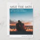 Modernes Minimalistisches Save the Date. Ein Foto hebt die Vorderseite hervor, während die Rückseite einen Platz für 2 Fotos oder 1 Foto und einen QR-Code hat.