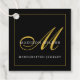 Elegantes mit Monogramm Schmuckdesignerprodukt hängt an einem Tag, mit Goldschrift mit einzigartigem fett geblüht, und sans Serifenname auf einem reichen schwarzen Hintergrund. Moderner, trendiger Stil.