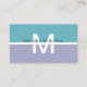 Eine Visitenkarte in Aqua und Lavendel mit einem kühlen modernen Look, um mit einem Monogramm anzupassen.