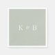 Moderner Monogram Cocktail Napkin. Light Sage und White.