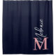 Moderner Monogram Navy Blue Pink Duschvorhang. Dieses elegante Duschvorhang mit Ihrem eigenen Monogramm-Initial und Namen personalisieren.