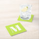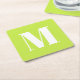 Moderne monogramm kalk-grün benutzerdefinierte Anfangsbuchstaben Party Square Paper Untersetzer. Anpassbarer weißer Text auf limiengrünem Hintergrund. Alle Farben können bearbeitet werden. Sie können es mit einer Zahl, Initial, Buchstaben, Monogramm anpassen. Diese sind ideal für Geburtstagsfeiern und Zuhause-Feste.