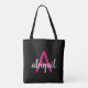 mit Monogramm Skriptname und erstklassige, moderne und elegante, elegante, stylische schwarz-schick-rosa "Add Your Name Tote Bag" sind personalisiert und perfekt für Sweet 16, 1., 21., 30., 40., 50., 60., 70., Geburtstagsparty, Weddings, Quinceanera, Brautparty, Junggeselinnen-Abschied, Holiday Gift, Shopping, Jubiläum oder Kinderdusche.