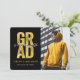 Moderne GRAD in Imitats Gold Imitats belichten kühne Typografie auf schwarzem Hintergrund, Klasse von 2024/2025, Chic, klassisch und stilvoll Abschluss Foto Announcement und Party Einladung Card. Sie können zwischen dem aktuellen oder dem Vorjahr für dieses Design wählen, indem Sie die folgenden einfachen Schritte ausführen: 1) Gehen Sie zu 'Personalisieren dieses Template' und klicken Sie auf 'Details' > 2) Scrollen nach unten und klicken Sie auf 'Bearbeiten mit dem Designwerkzeug' > 3) Aktivieren Sie die Ebene mit dem 'Jahr', das Sie gewollt haben, indem Sie auf das Augensymbol auf dieser Ebene klicken. 4) Doppelter Karo, dass nur die Ebene (mit dem Jahr), die Sie gewollt ist sichtbar ist. Design ist vollständig editierbar. Weitere benutzerdefinierte Optionen auf der Seite des Produkt-Customizers. Der Hintergrund (unter allen Ebenen) kann in eine beliebige Farbe geändert werden. Entworfen / Original-Kunstwerk von fat*fa*tin. Einfach mit eigener Textnachricht, Name, Foto oder Bild personalisieren. Weitere Schriftart-Stile, Foto-Filter und Editing-Features sind auf der 'Edit Design'-Seite verfügbar. — https://www.zazzle.com/collections/graduation_party_supplies-119447822100562139 — https://www.zazzle.com/collections/personalized_graduation_accessories_custom_gifts-119420215306879748 — https://www.zazzle.com/collections/graduation_announcement_cards-119240297798176351 — www.zazzle.com/collections/graduation_party_invitations-119988321070623801 — www.zazzle.com/collections/graduation_thank_you_cards-119015369615228414 — www.zazzle.com/fat_fa_tin — www.zazzle.com/color_therapy www.zazzle.com/fatfatin_blue_knot www.zazzle.com/fatfatin_red_knot www.zazzle.com/fatfatin_mini_me www.zazzle.com/fatfatin_box www.zazzle.com/fatfatin_design www.zazzle.com/fatfatin_ink