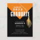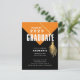Moderne & kühne Klasse der 2022 Graduierungsparty Einladung mit einem orangefarbenen Graduierdeckel mit goldenem Tassel-Set auf schwarzem Hintergrund. Besuchen Sie unseren Shop, um dieses Design in einer Vielzahl von Schulfarben zu sehen.