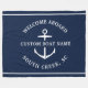 Nautical Boating Vlies Decke in marineblau lesen "Willkommen an Bord" sowie Ihren eigenen Bootsnamen und Position.