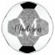 Spielen Sie Ihr Fußballspiel im Stil mit diesem modernen Silver Glitzer Glam Monogram Name Girls Soccer Ball. Es ist modern gestaltet mit einem silbernen Imitat Glitzer Hintergrund. Monogram initial ist in großer weißer Schrift auf der Mitte und Name ist in schwarzer Kalligrafie Skriptschrift, Klicken Sie personalisieren Vorlage Option und geben Sie Monogramm und Name.