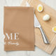 Speziell für die Herbstsaison konzipiertes festliches Küchenhandtuch mit modernem rustikalem, weißem Kürbis-Design mit personalisiertem Familiennamen.