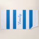 Personalisierter moderner Name Französisch blau gestreifte Pool Beach Handtuch.