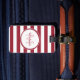 Rote und weiße Süßigkeit eines modernen Chilipfeffers stripes Gepäckumbau. Personifizieren Sie dieses moderne Muster, indem Sie Ihre Namens- und mit Monogramm Initiale addieren. Dieser glatte Monogrammentwurf ist ein Teil der Chili-Pfeffer-Reise-Wesensmerkmale-Sommer-Farbsammlung.