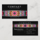 Stilvolle moderne Visitenkarte mit einem größtenteils schwarzen Hintergrund. Zwischen dem Silber stehen farbige Linien, welche stellen die Details eines Mehrfarbenmandala darstellen und einen netten Pop der Farbe zur Verfügung und nehmen diesen Kontakt auf, zu kardieren, heraus von der Menge. Klicken fertigt besonders an, um mehr Kontrolle über Schriftartwahlen und den Gebrauch von Raum für Text zu haben.