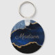 Moderner Navy Blue Gold Marmor Glitzer Vorname Schlüsselanhänger