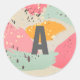 Dieser trendige und moderne mit Monogramm Rundaufkleber mit abstrakten Pinselstrichen in Neon-Rosa, Orange und Blasstürkisblau mit Imitaten in Gold und Grau-Spritzern auf dem Hintergrund des Kraftpapiers. Personalisieren Sie es für Ihre Bedürfnisse. Ideal für Makeup-Künstler, Friseur-Stylisten, Mode-Stylist, Berater, Grafiker, Mode-Blogger, Autoren, Innenarchitekten, Veranstaltungsplaner und alle Business-Profis. In meinem Geschäft finden Sie passende Produkte.