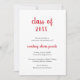 Minimalistische Abschluss-Ankündigungskarte mit einem einfachen und klassischen Design mit "Jahrgangsklasse" und dem Namen des Absolventen in einer dicken roten Schrift-Handschrift auf weißem Hintergrund. Die Rückseite ist massiv rot. Eine traditionelle Ankündigungskarte mit einem modernen Flair für einen Absolventen.
