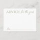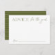 Einfache Abschluss-Beilagen mit dem "Advice for the Grad" in der olivgrün-modernen Schrift. Der Abschluss-Tipp drehe auf, um ein olivgrün-weiß gestreiftes Muster anzuzeigen. Tippen Sie mit Ihren Einladungen zur Abschlussfeier oder den Graduierungsankündigungen auf die Ratschläge für die Graduiertenkarten, damit Freunde und Familie sie im Voraus ausfüllen können. Die Ratschläge, die Ihre Lieben teilen, werden für viele Jahre geschätzt.