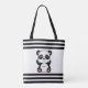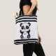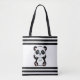 Moderner Panda Bär und schwarz-weiß gestreiftes Tote Bag. Mode-Lebensmitteltaschen. Trendy schwarz-weiße Einkaufstaschen.