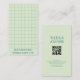 Visitenkartendesign mit pastellblau kariertem Muster und minimalem Layout, mit QR-Code für schnellen Zugriff auf eine Website oder ein Portfolio. Geeignet für handgefertigte Bekleidungsmarken, Kreativprofis oder Boutiquen.