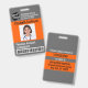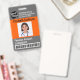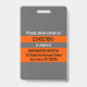 Einfaches und modernes, individualisierbares Abzeichen für medizinische Fachkräfte mit personalisiertem Logo, Strichcode, Foto, Name und Anschrift. Erstellt für das medizinische Zentrum, das Krankenhaus und die Gesundheitseinrichtung. Hauptfarben dieser beruflichen Vorlage: orange und grau.