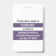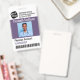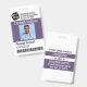 Einfaches und modernes, individualisierbares Abzeichen für medizinische Fachkräfte mit personalisiertem Logo, Strichcode, Foto, Name und Anschrift. Erstellt für das medizinische Zentrum, das Krankenhaus und die Gesundheitseinrichtung. Hauptfarben dieser beruflichen Vorlage : weiß und lila.