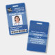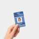 Einfaches und modernes, individualisierbares Abzeichen für medizinische Fachkräfte mit personalisiertem Logo, Strichcode, Foto, Name und Anschrift. Erstellt für das medizinische Zentrum, das Krankenhaus und die Gesundheitseinrichtung. Hauptfarben dieser beruflichen Vorlage: blau und weiß.