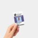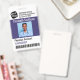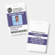 Einfaches und modernes, individualisierbares Abzeichen für medizinische Fachkräfte mit personalisiertem Logo, Strichcode, Foto, Name und Anschrift. Erstellt für das medizinische Zentrum, das Krankenhaus und die Gesundheitseinrichtung. Hauptfarben dieser beruflichen Vorlage: lila blau.