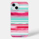 Moderne Preppy Cyan Magenta Watercolor Stripe Muster Personalisiert Name iPhone 15 Plus Hüllen bietet Ihren personalisierten Namen, Monogramm oder Initalien in einer einfachen Skripttypografie auf einem modernen cyan und mageneta Wasserfarbe Streifen Hintergrund. Perfektes Geschenk für sie zum Geburtstag, Mutter zum Muttertag, Schwester oder Bestie für Weihnachten und Feiertage. Entworfen von ©Evco Studio www.zazzle.com/store/evcostudio