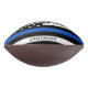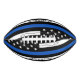 Thin Blue Line Flag Football - USA American Flag Design in Police Flag Farben, modernes schwarz blaues Design. Perfekt für alle Polizeibeamten und die Strafverfolgung. Personalisieren Sie die Personalisierung mit dem Namen des Polizeibeamten und/oder der Abzeichen- oder Familiennummer. Dieser dünne, blaue Fußball ist perfekt für ein Geschenk der Strafverfolgungsbehörden für den Ruhestand oder für polizeiliche Abschluss. . COPYRIGHT © 2020 Judy Burrows, Black Dog Art - Alle Rechte vorbehalten. Moderne Dünnblauer Linie Personalisiert Polizeibeamter Fußball