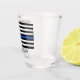 Thin Blue Line Flag Shot Glas - USA Fahne Design in Police Flag Farben, modernes schwarz blaues Design. Ideal für Polizeibeamte, Polizeierzieher und Polizeibeamte der Ehefrau . Personalisieren Sie die Personalisierung mit dem Namen des Polizeibeamten und/oder der Abzeichen- oder Familiennummer. Dieses dünne blaue Schussglas eignet sich perfekt für Geschenke, die der Strafverfolgung angehören, oder für Geschenke von Abschlüssen der Polizei und polizeiliche Gastgeschenke. . COPYRIGHT © 2020 Judy Burrows, Black Dog Art - Alle Rechte vorbehalten. Modernes Dünnblauer Personalisierter Polizeibeamter Schießglas