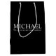Moderne Schwarz/Weiß Personalisierte Trauzeuge Geschenktasche mit dem Namen und Titel des personalisierten Trauzeugen im klassischen Serif Schriftart Stil. Auch perfekt für Brautjungfrau, Trauzeugin, Blume Mädchen, Trauzeuge und Ringträger.