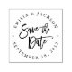 Mit dieser schicken Gummi-Briefmarke mit Ihren Namen und dem Hochzeitsdatum, die "Save the Date" in der handgeschriebenen Pinseltypografie umkreist, können Sie Ihre Save the Date Umschläge, Postkarten und Heimwerkerartikel abschließen.